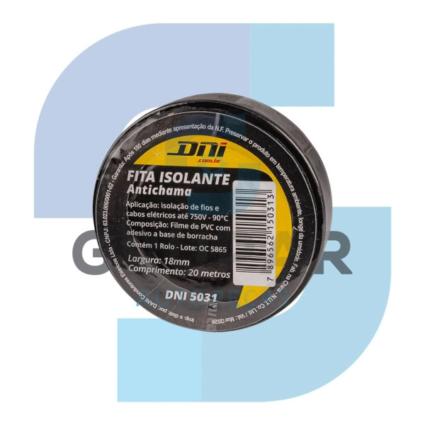 FITA ISOLANTE PVC 20MX18MM COM COLA (10 UND) Avaliação: SKU.: 8545 Marca: DNI Comprar Detalhes do Produto REF: DNI-5031 / DP25636
